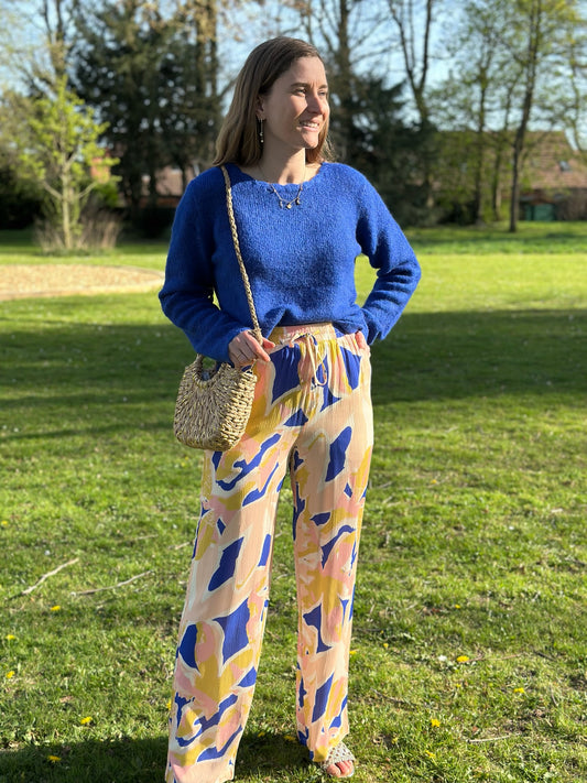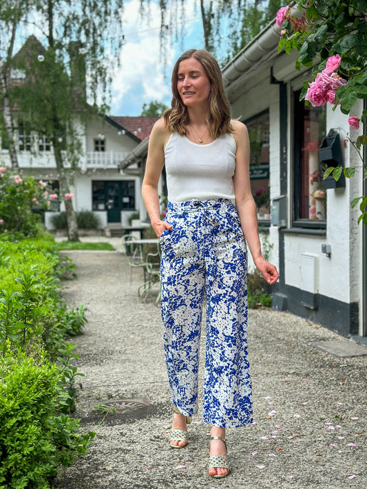 Pantalon fluide Albane blanc et bleu