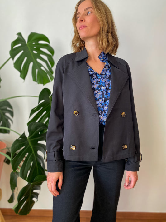 ÉpuiséTrench Céleste noir court