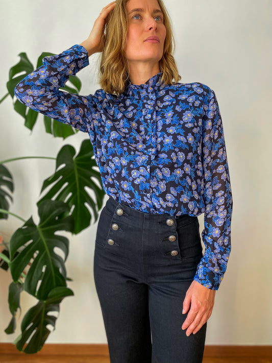 Chemise Clementine noire à fleurs bleues