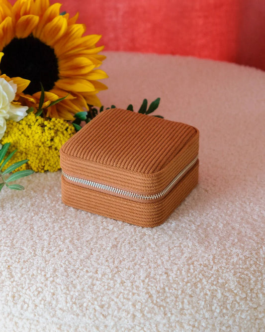 Mini boîte à bijoux de voyage Marie en velours côtelé camel