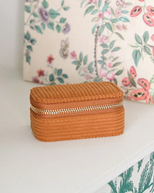 Boîte à bijoux de voyage Corinne en velours côtelé camel