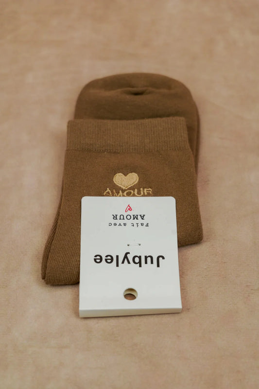 Pack de 3 chaussettes - Fantaisie coeur marron doré écru