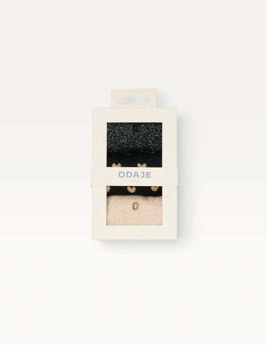 Pack de 3 chaussettes - Paillettes et léopard noir doré