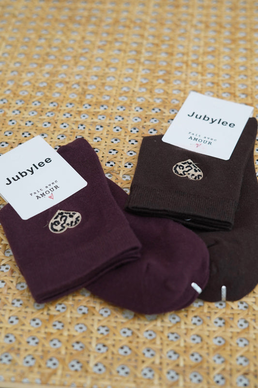 Pack de 3 chaussettes - Petit coeur bordeaux doré