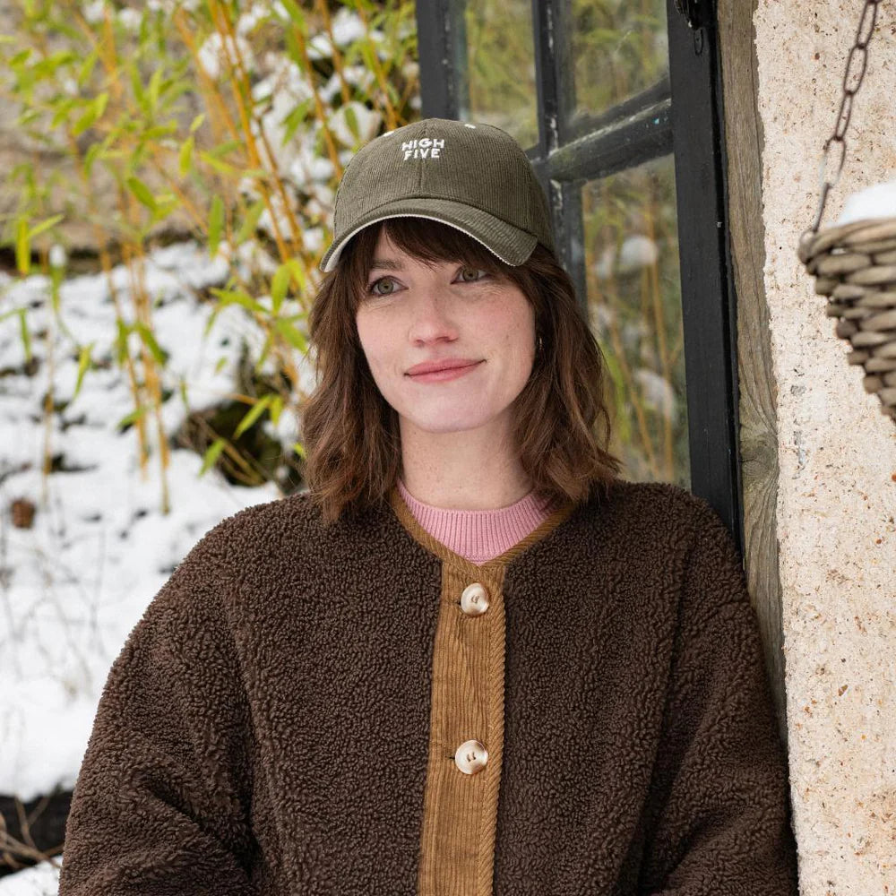 La casquette High Five en velours côtelé kaki est l’accessoire parfait pour un look décontracté et plein de bonne humeur. Sa broderie crème apporte une touche douce et rétro, idéale pour accompagner toutes vos tenues du quotidien.