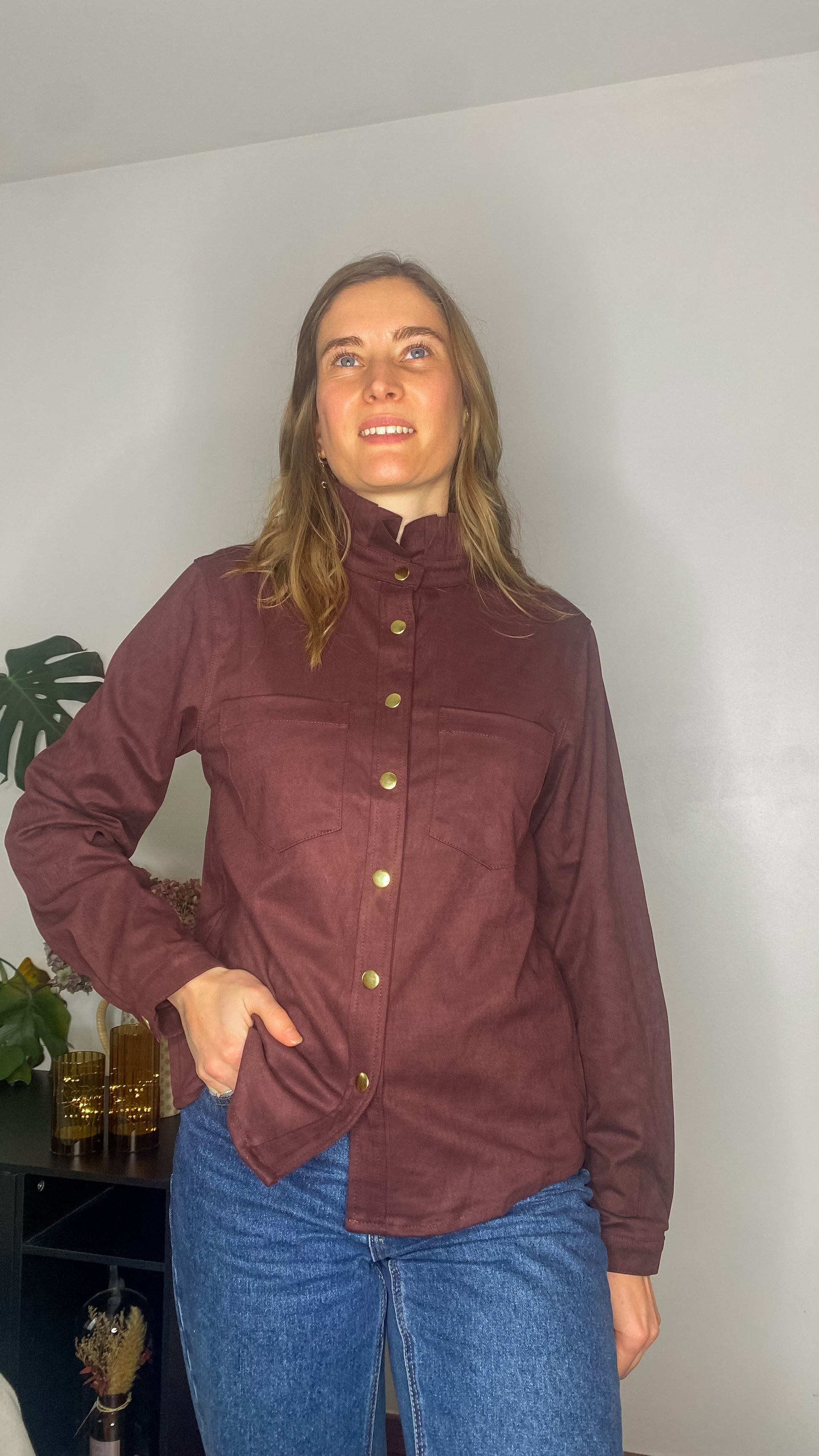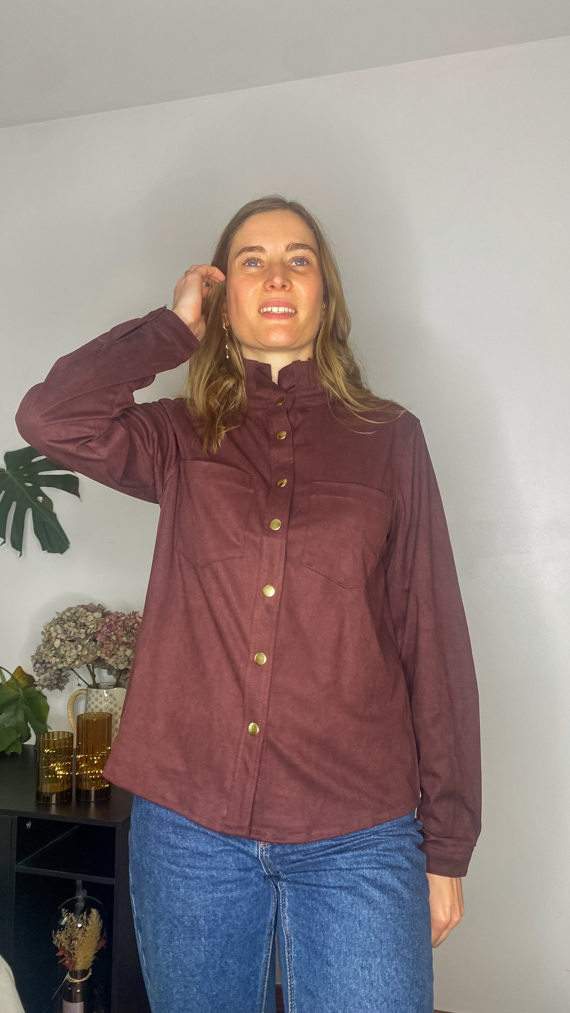 La chemise Elie en suédine bordeaux apporte une touche chic et moderne à toutes vos tenues. Conçue dans une matière suédine douce et légèrement veloutée, elle offre un tomber impeccable et un confort idéal au quotidien.