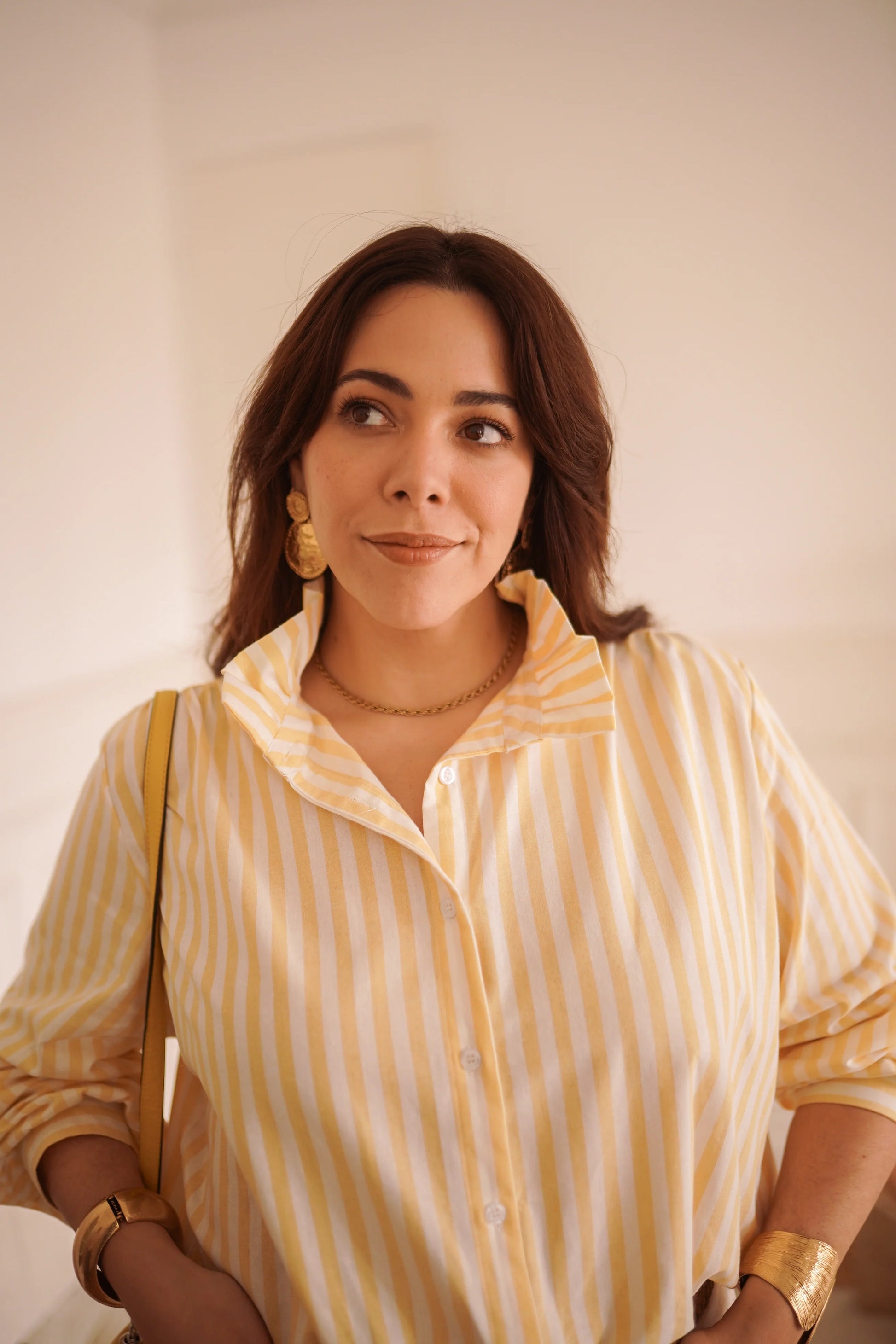 Polyvalente et lumineuse, la Chemise Romane est parfaite pour composer des looks frais et faciles, du printemps à l’été. 💛