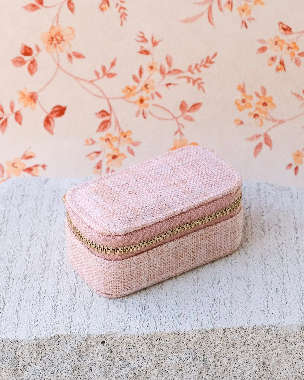 Mini boîte à bijoux de voyage Marie effet lin rose