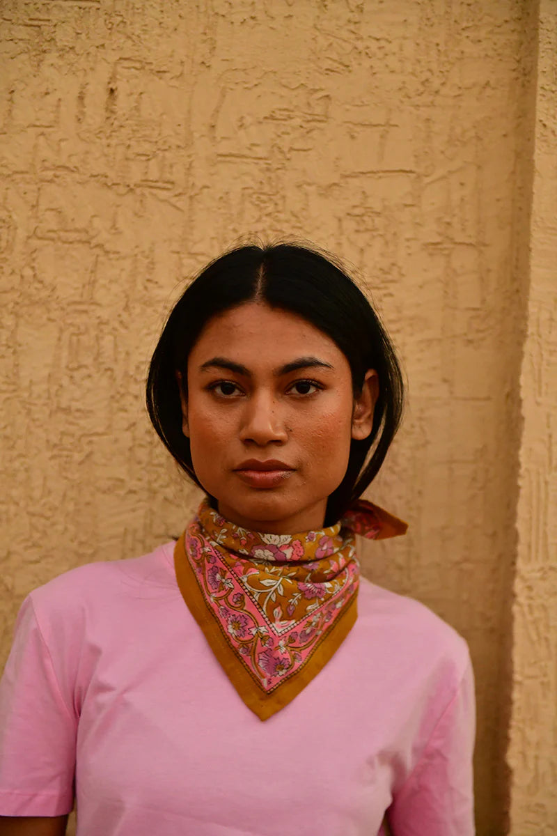 Le petit foulard CALYPSO Caramel est l’accessoire incontournable pour apporter une touche lumineuse et féminine à toutes vos tenues. Son imprimé fleuri d’inspiration indienne, à la fois classique et plein d’énergie, illumine une tenue chic comme un look plus décontracté.
