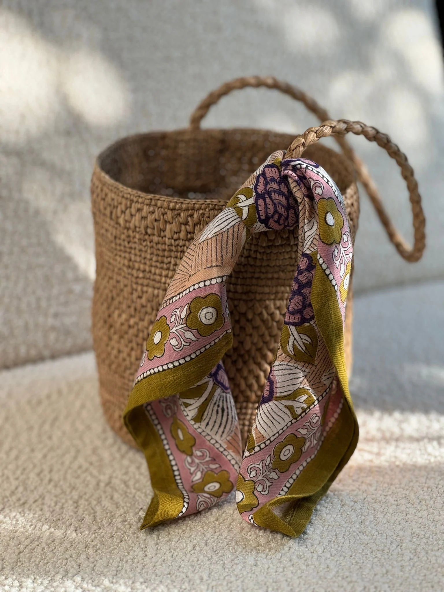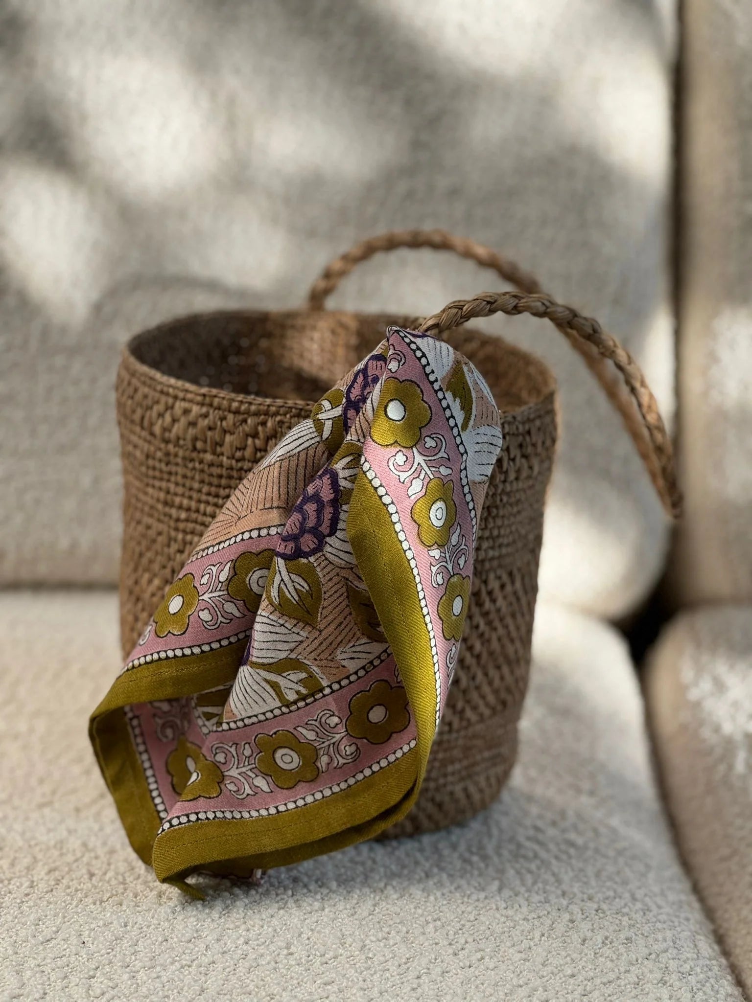 Impression artisanale au tampon de bois – chaque foulard est unique